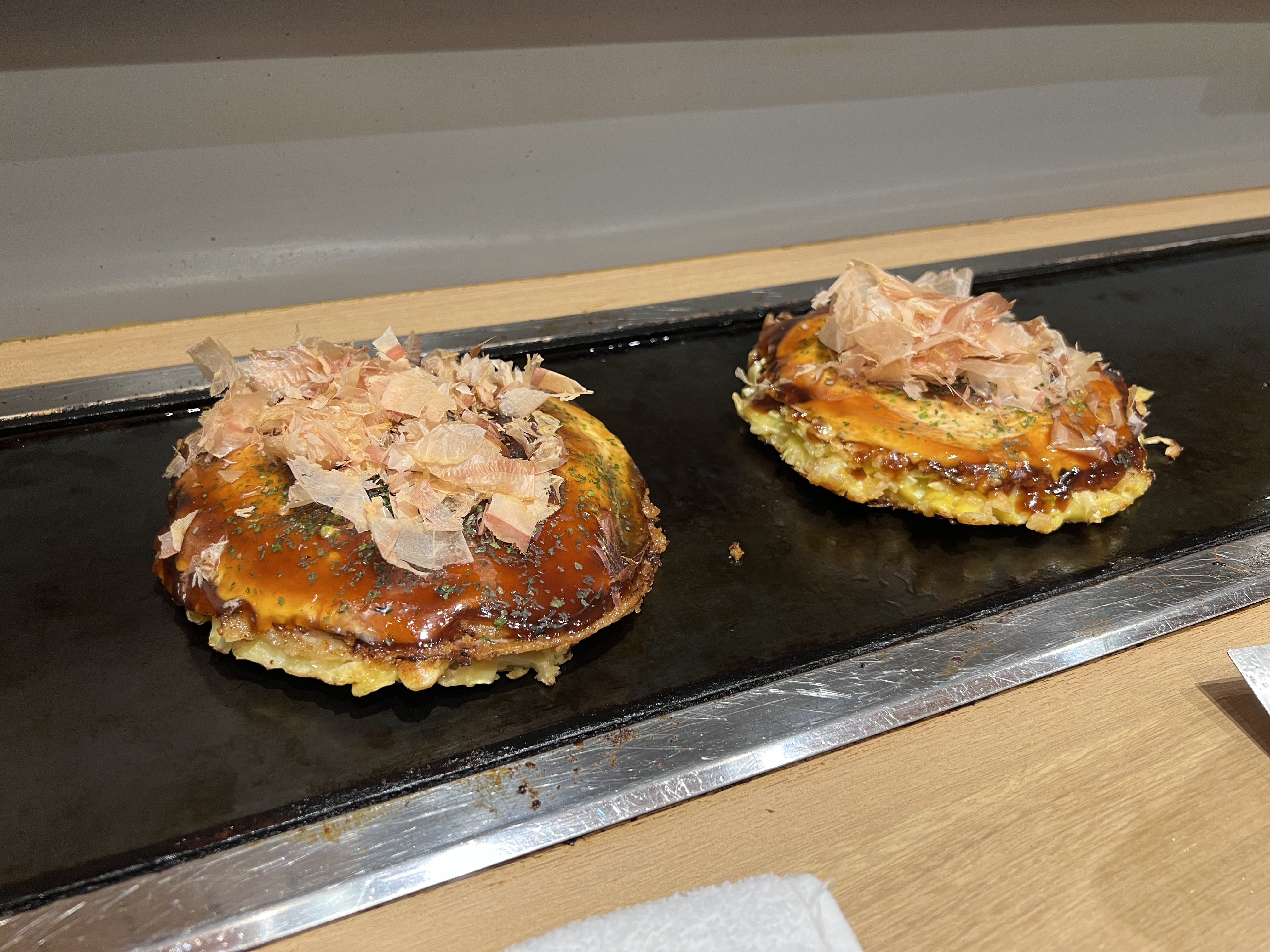 At night, we went to Dotonbori, the most popular area of Osaka. We were lucky to get into a busy restaurant for dinner, and we had the most amazing okonomiyaki. My husband ordered shrimp and scallops; I had pork okonomiyaki. 10/10 recommend Okonomiyaki Sakaba O. After dinner, we saw the infamous running man sign (Glico) and enjoyed the Dotonbori nightlife. It was hopping on a Friday night, and it was exciting to be among the crowds.
